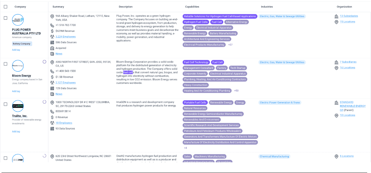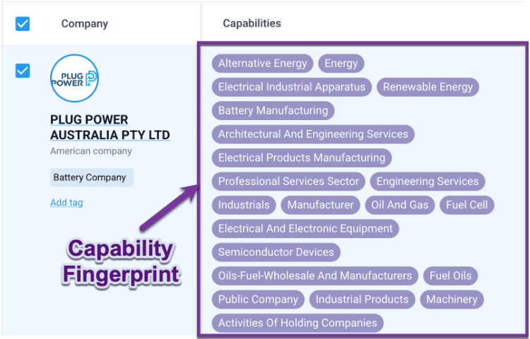 It is like giving every company its own DNA sequence that is tied to how it operates in the world. Now imagine being able to compare those fingerprints across thousands of companies. You can filter by function, industry, capabilities, or markets served.
